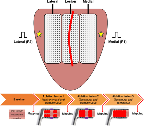 We specifically evaluated unipolar, bipolar, and omnipolar voltage mapping during the stepwise creation of linear RF ablation lesions in an ex vivo perfused porcine heart model. By intentionally creating lesions in three stages—non-transmural discontinuous, transmural discontinuous, and fully transmural continuous—we were able to systematically assess how each mapping technique reflects lesion formation, continuity, and transmurality.