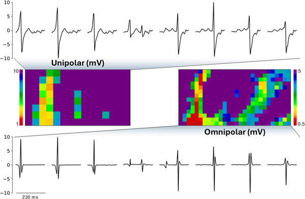 Our findings highlight that omnipolar mapping overcomes key limitations of both unipolar and bipolar techniques by providing direction-independent voltage measurements with higher spatial resolution. This allows for more accurate identification of incomplete lesions and improves the assessment of lesion continuity and transmurality—both critical factors for achieving durable conduction block and preventing arrhythmia recurrence.