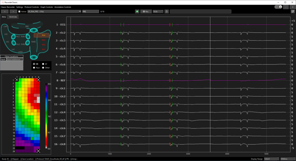Another software package that we are working on is being used to acquire bio-electric data from epicardial data acquired during cardiac surgery. While in the past these epicardial mapping data acquisition programs solely acquired the signals and only visualized the signals itself, we are now also developing methods to perform data analysis in real time. This could enable us to develop methods to improve/reduce the risk of certain procedures.